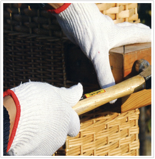 紅布黃布二層加托手套 出口十針A級燈罩棉10付450克綠邊